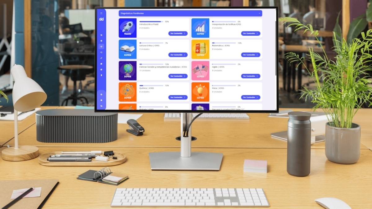 La interfaz es sencilla, rápida y organizada: puedes entrar desde el celular o el computador, ver tu progreso, repetir contenidos y acceder a más de 250 simulacros.