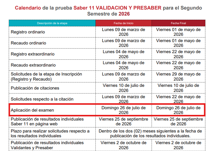 De acuerdo con el cronograma oficial, estas son las fechas más importantes para el primer semestre de 2026: